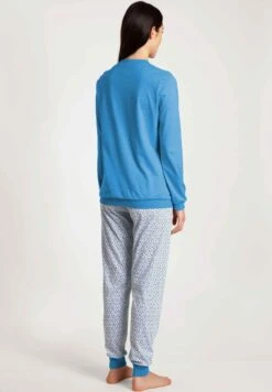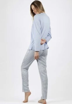 Classic Manga Larga Fashion Stripes Para Set – Pijama – Azul